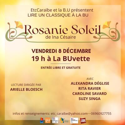 "Rosanie Soleil" d'Ina Césaire - vendredi 8 décembre à 19h