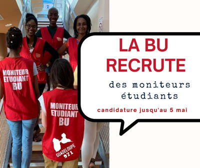 Comme chaque année, les BU de Guadeloupe renforcent leurs équipes en faisant appel à des étudiant(e)s recruté(e)s en qualité de moniteurs/monitrices :